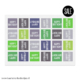 Dubbele felicitatiekaart met verfspetters en verjaardagsteksten in paars en limegroen.