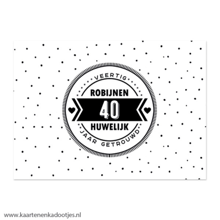 • Kaart 40 jaar getrouwd robijnen huwelijk wit/zwart