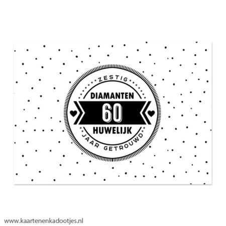 • Kaart 60 jaar getrouwd diamanten huwelijk wit/zwart