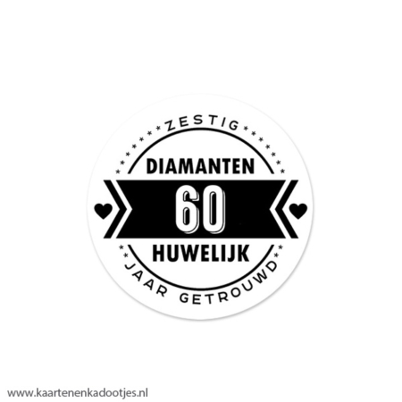 • 5 Stickers rond 45 mm 60 jaar getrouwd diamanten huwelijk