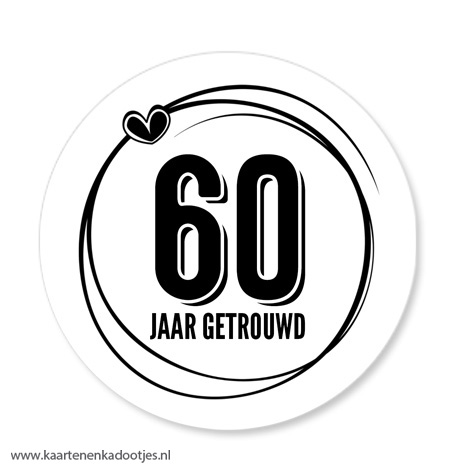 3 Stickers rond 64 mm 60 jaar getrouwd swirl hartje