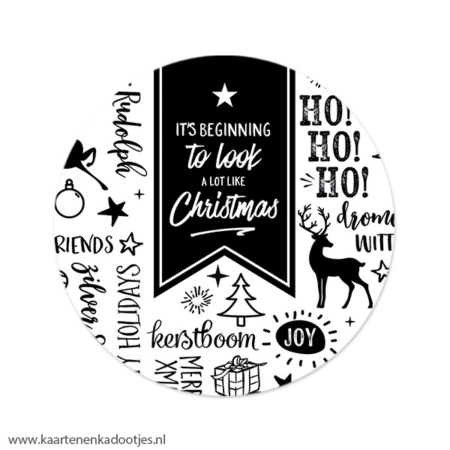 • 3 Stickers rond 64 mm it’s beginning to look a lot like Christmas wit/zwart