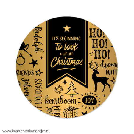 • 3 Stickers rond 64 mm it’s beginning to look a lot like Christmas goudfolie/zwart