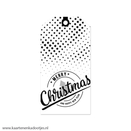 • Kadolabel medium Kerst serie merry Christmas sterretjes wit/zwart