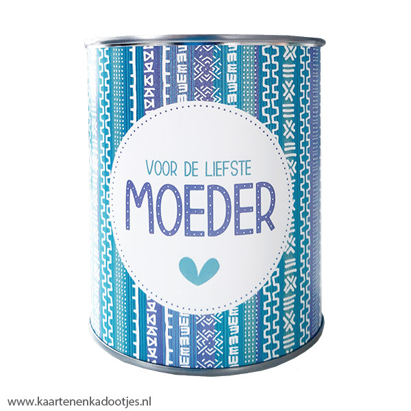 Dit kadoblik is een superleuk en origineel kado voor moeders. Je kunt het blik zelf vullen met chocola, snoep, knutselwerkje en/of een klein kadootje.