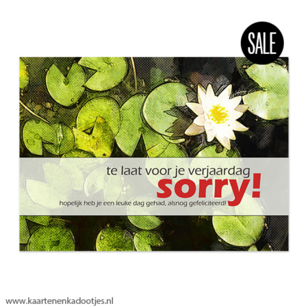 • 1/10x Dubbele kaart sorry te laat voor je verjaardag waterlelies
