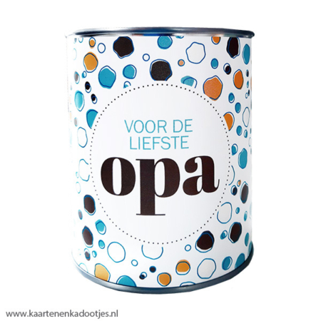 Dit kadoblik is een superleuk en origineel kado voor oma’s. Je kunt het blik zelf vullen met chocola, snoep, knutselwerkje en/of een klein kadootje.