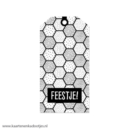 • Kadolabel medium feestje zeshoeken