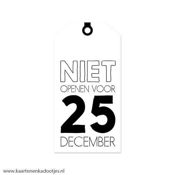 Kadolabel medium Kerst serie niet openen voor 25 december wit/zwart