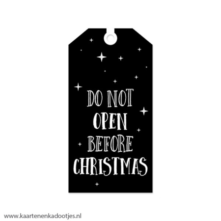• Kadolabel medium Kerst serie do not open before Christmas wit/zwart
